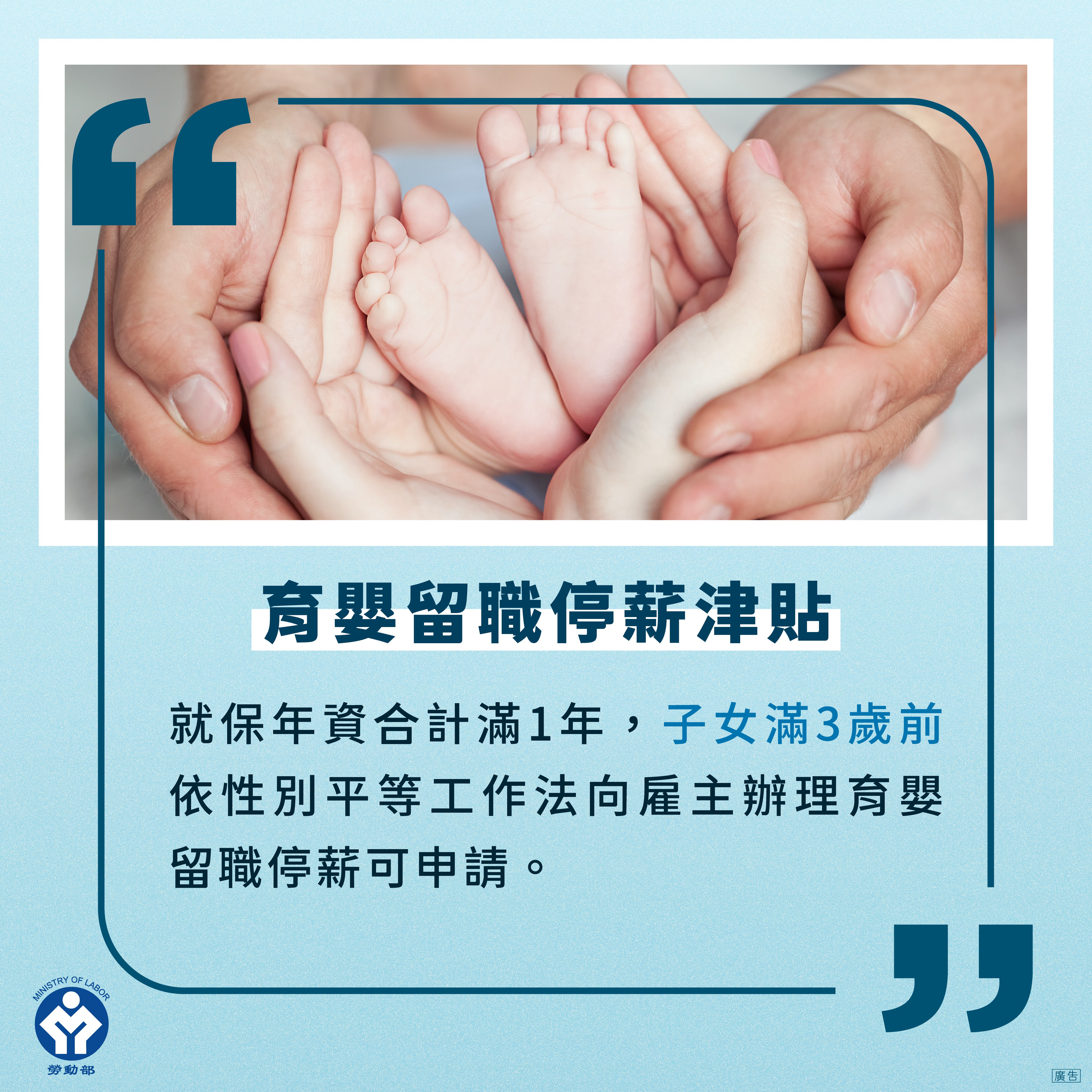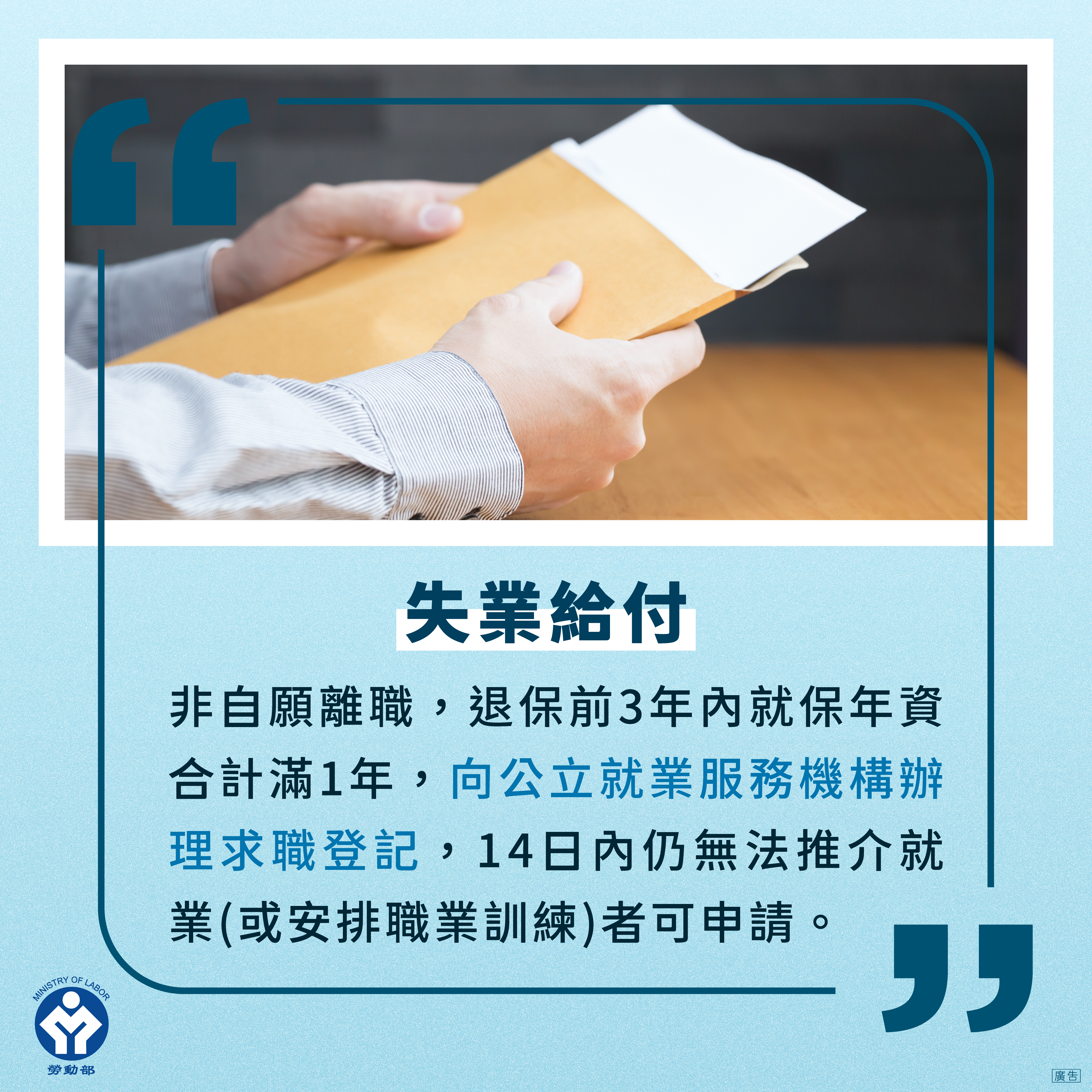 勞動部表示,就業保險與勞工保險的規定不同,依《就業保險法》規定,不論僱用員工數的多寡,年滿15歲以上,65歲以下之本國籍受僱勞工及依法在臺工作的新住民 (指與在我國境內設有戶籍之國民結婚,且獲准居留依法在臺灣地區受僱工作之外國人、大陸地區人民、香港居民或澳門居民),除依法應參加公教人員保險或軍人保險等法定不得參加本保險之情形外,均應以其雇主為投保單位,參加就業保險。